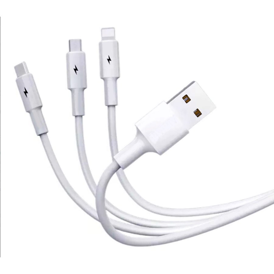 T66 Multicargador largo USB multifuncional de carga rápida. Cable de Carga Micro USB + Lightning + USB C Rapid Series. Cable suave y plano para evitar que se enrolle. Tamaño Largo 120 cms. Peso 34 Grs. Material Plástico. Presentación Caja De Cartón Blanco. Embalaje 1 Unidad. Embalaje Master 300 Unidades. Tamaño Caja Master 40,5 x 31,5 x 46,5 cms. Peso Caja Master 14,2 Kg.