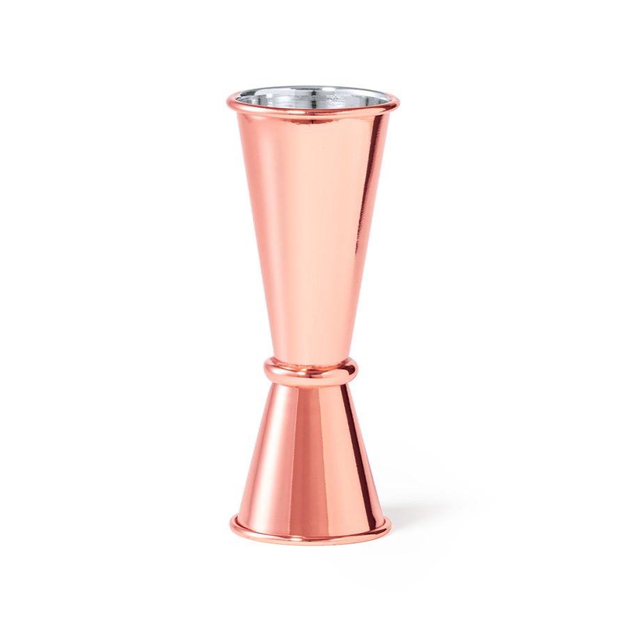 M120 Medidor de licor de acero inoxidable electro plateado en cobre. Presentación en plástico burbuja dentro de caja de negra. Tamaño Ø 4,44 cms. x 4,33 cms. x 11.3 cms Capacidad 30-50 ml. Material Acero Inox. SS 304. Embalaje 1 unid. Embalaje Master 100 unid. Tamaño Caja Master 52,5 x 27 x 26,5 cms. Peso Caja Master 8,9 Kg. Opciones de Personalización