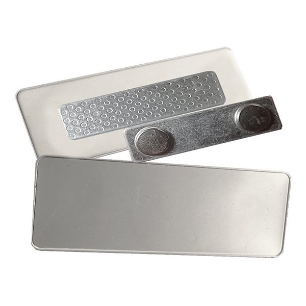PIOCHA RECTANGULAR IMÁN Piocha rectangular color plata con sujeción imantado. VENTA MULTIPLOS DE 50 UNIDADES. Color Plata Dimensiones 25 x 75 mm. Packing caja negra 50 unds. Packing Máster 500 unds. Tamaño Caja Máster 32x26x18 cms. Peso Caja Máster 12 kgs. No Incluye impresión ni grabado