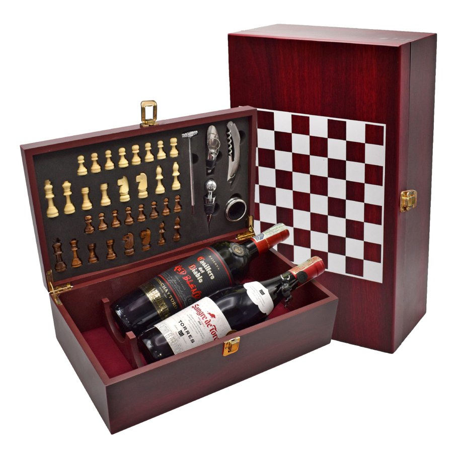 Set de Vino con Ajedrez Caoba Deluxe JC03