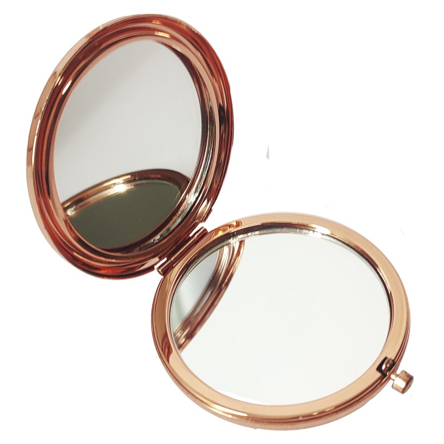 VA11 Útil y elegante espejo encobrizado con tapa, perfecto para llevar en la cartera. Presentación en caja de cartón negra. Tamaño Ø 65 x 12 mm. Peso 60 gr. Presentación Caja Negra. Embalaje 42 Unidades. Embalaje Master 252 Unidades Tamaño Caja Master 42,5x34x31,5 cms. Peso Caja Master 17,4 Kg. Opciones de Personalización