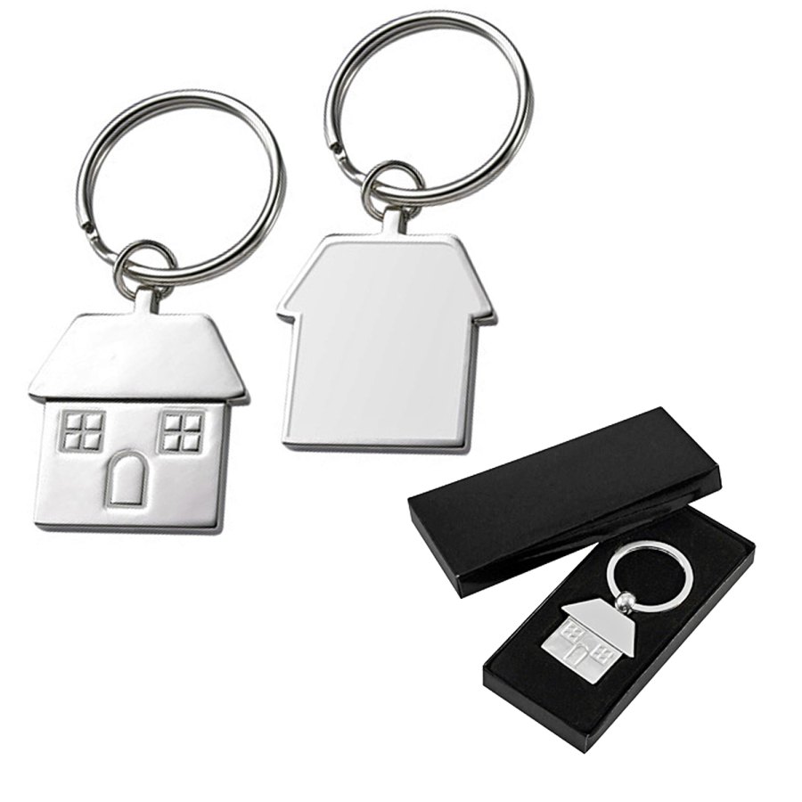 K7 Llavero metálico con forma de casa. Acabado brillante. Presentación en estuche de cartón laminado color negro con cuna interior de terciopelo. Tamaño 3,6 cms x 3,6 cms x 0,3 cms. Material Metal. Embalaje 50 Unidades. Embalaje Master 250 Unidades. Tamaño Caja Master 38 x 25 x 34 cms. Peso Caja Master 8,5 Kg. Opciones de Personalización