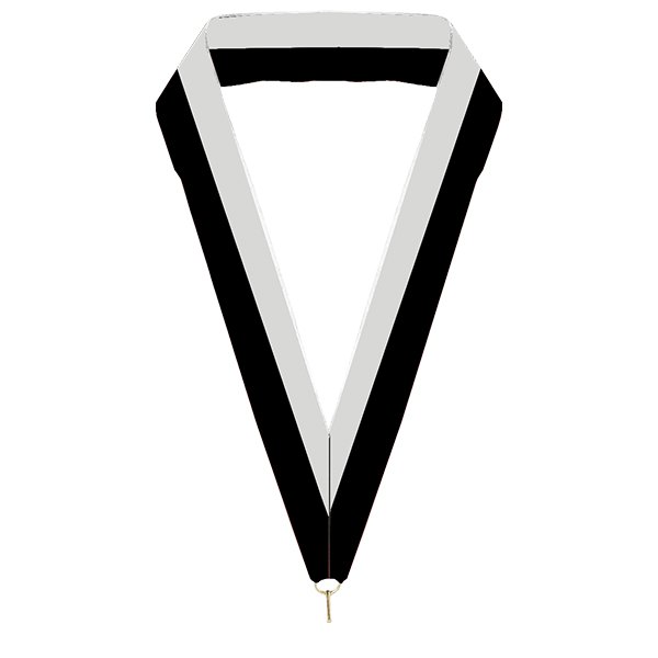 Cinta de tela en dos colores con gancho para medalla. Código: 591080165 Bolsa de 100 Unidades Largo Cintas 88 cm. blanca negra