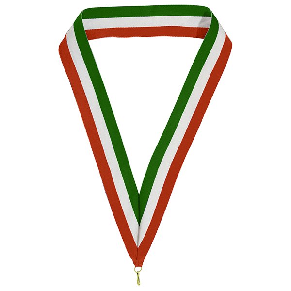 Cinta de tela en tres colores con gancho para medalla. Código: 591080160 Bolsa de 100 Unidades Largo Cintas 88 cm.