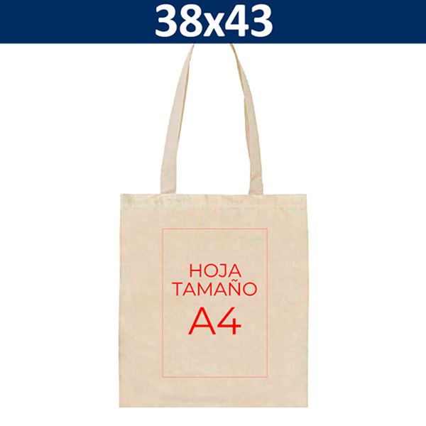 AL04 Bolsa publicitaria de algodón. Liviana, resistente y reutilizable, cuenta con asas con costura reforzada bordada a la bolsa, lo que garantiza mayor resistencia y seguridad en su uso. Tamaño 38 x 43 cms. Largo total Asa 71,5 cms. Material 70% Algodón – 30 % Polyester, 140 grs. Embalaje Máster 200 unid. Tamaño Caja Máster 42 x 50 x 33 cms. Peso Caja Máster 15 kgs. Opciones de Personalización