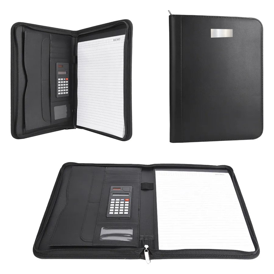 N560 Libreta de cubierta de PU símil cuero color Negro, con una placa metálica en la tapa para el grabado del nombre. Presentación en Bolsa Plástica. Incluye: Calculadora con 8 dígitos Bolsillos de almacenamiento Ranuras para tarjetas 1 portalapices 20 hojas de papel tamaño A4 Tamaño cerrado 25 x 33 cms. Material Tapa Cartón forrado en PU Simil Cuero Papel BLanco con líneas Embalaje 15 unid. Embalaje Máster 30 unid. Tamaño Caja Máster 53 x 38 x 35 cms Peso Caja Master Kgs. Opciones de Personalización