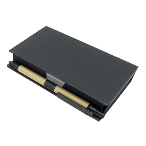 N5 Memo set ecológico rectangular plegable que incluye set de post-it, bloc de notas, regla y bolígrafo ecológico. tinta azul. En color negro o kraft. Cartón 1.100 Grs. 100 unidades Flag Post-it. 100 unidades bloc de notas blanco. 20 unidades post-it rectangular amarillo. Tamaño 14 cms. x 10 cms. x 2,5 cms. Material Tapa Cartón Embalaje 30 unid. Embalaje Master 60 unid. Tamaño Caja Master 33,5 cms. x 32 cms. x 33,5 cms. Peso Caja Master 12 Kgs. Opciones de Personalización